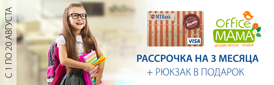 С 1 по 20 августакаждый покупатель интернет-магазина «ОфисМама», заказавший товаров к школе на сумму от 800 тысяч бел.руб., получит в подарок рюкзак! Для мальчика или девочки – вам лишь потребуется указать в примечании пол ребёнка.