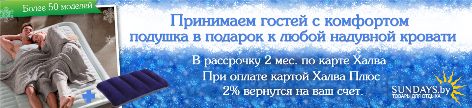 Весь декабрь при покупке надувной кровати по карте Халва или Халва Плюс вы дополнительно получаете надувную подушку!